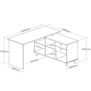 Dimensões da Mesa Escrivaninha 2 Gavetas com Nichos em L Golden: