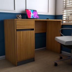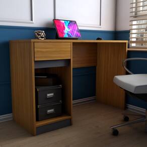 O(a) Mesa Escrivaninha Alune 1 Porta 1 Gaveta Freijó/Grafite - Loja é produzido em MDP na escala de brilho Brilho e Fosca com Textura, e possui um grau de dificuldade de montagem: Médio.