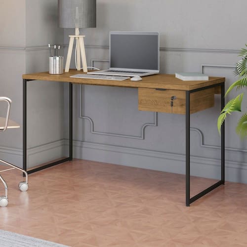 O(a) Mesa Escrivaninha Chelm 1 Gaveta Freijó/Preto Fosco - Kappesberg é produzido em MDP e Ferro na escala de brilho Fosco, e possui um grau de dificuldade de montagem: Médio.