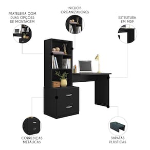 Mesa Escrivaninha Estante Livreiro 138cm Jay Preto Z49 - Mpozenato