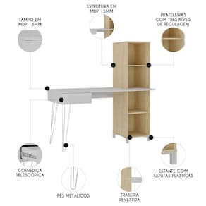 Transforme seu espaço com a elegante Mesa Escrivaninha com Estante Orizon A06 Terrazza/Carvalho, da Mpozenato, que une estilo e funcionalidade!