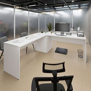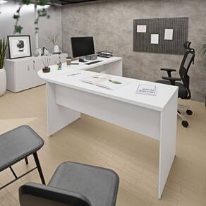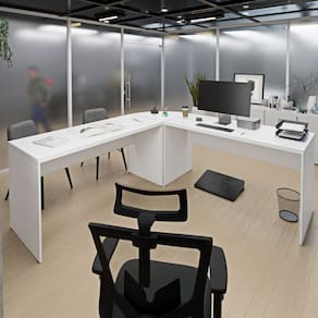 Eleve o estilo do seu escritório com a Mesa em L Arredondada. Um design moderno e impecável que harmoniza com qualquer decoração.