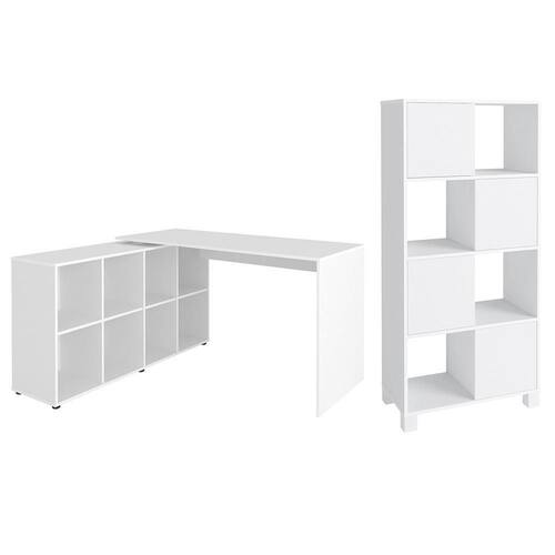 A Mesa Escrivaninha em L Eron e Estante Livreiro Maly A06 Branco, da Mpozenato, possui um design moderno sendo perfeita para o seu home office.