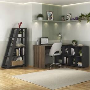 A combinação da Mesa Escrivaninha em L Eron e Estante Livreiro Stela A06 Freijó/Preto , da Mpozenato, é perfeita para levar organização, funcionalidade e beleza ao seu home office.