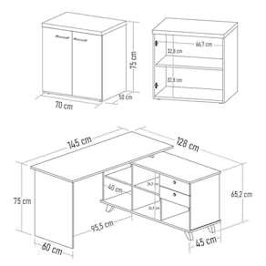 Conteúdo da Embalagem: 1 Mesa em L, 1 Balcão.