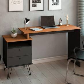 Com toques de estilo industrial expressos pelos pés metálicos, essa mesa para garante durabilidade e resistência, graças ao acabamento BP e tampo de 18mm. Além disso, é uma mesa para home office versátil, pois conta com montagem , o que permite que você escolha entre três opções de tamanho e, ainda, se quer as gavetas do lado direito ou esquerdo, ou seja, você tem liberdade para adequá-la perfeitamente ao seu espaço.