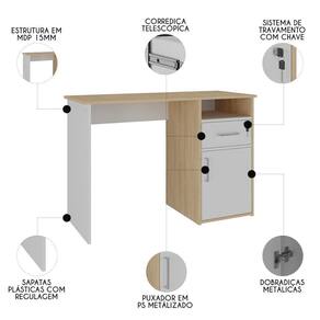 Descubra a harmonia perfeita entre estilo e funcionalidade com a Mesa Escrivaninha Home Office 110cm Ally A06 Carvalho/Branco, da Mpozenato!