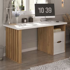 Eleve sua produtividade e tenha um escritório home office cheio de charme e estilo com a Mesa Escrivaninha Home Office 140cm 2 Gavetas Dora, da Lyam Decor. Vem conferir!
