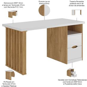 Com design contemporâneo e fabricada com de alta qualidade e resistência como, por exemplo, o tampo em Tamburato 37mm, essa escrivaninha é perfeita para quem busca funcionalidade e elegância. Sua aparência única, com a mescla de tonalidades de amadeirado claro e branco, vai adicionar um toque sofisticado a qualquer ambiente. Por sua vez, a funcionalidade não fica apenas por conta da bancada, mas também nas duas gavetas que oferecem espaço de armazenamento conveniente para manter sua área de trabalho organizada. Além disso, o nicho adicional é ideal para guardar objetos essenciais ao alcance da mão. Para finalizar, os pés ripados não apenas conferem um design único, como também garantem estabilidade total. Incrível, não é mesmo?!