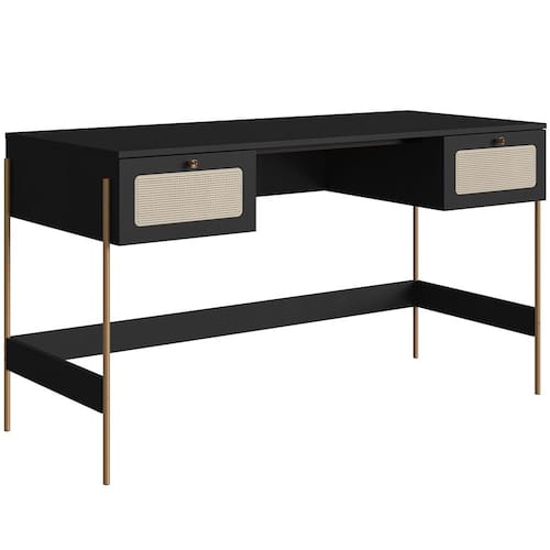 Os pés metálicos estilo industrial oferecem robustez e durabilidade, enquanto o detalhe em tela sintética adiciona um elemento suave e sofisticado. O estilo minimalista da mesa expresso pelas linhas retas não só otimiza o espaço, mas também proporciona uma estética limpa e inspiradora, permitindo que você se concentre no que realmente importa: suas ideias. Ideal para quem busca um ambiente de trabalho que seja ao mesmo tempo funcional e acolhedor, essa mesa para escritório é o complemento perfeito para o seu home office.