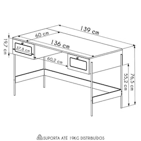 Com um design retrô, a Mesa Escrivaninha oferece amplo espaço para as atividades diárias, sem comprometer a estética do ambiente. A durabilidade é garantida pela estrutura em MDP com acabamento BP, enquanto suas 2 gavetas mantêm seus acessórios organizados e sempre acessíveis. As corrediças metálicas asseguram uma abertura suave das gavetas, e o aplique de tela sintética adiciona um charme único à peça. Os pés robustos da Mesa de Escritório, feitos de tubos de aço metálicos, são equipados com ponteiras plásticas para garantir estabilidade e proteger o piso contra arranhões. A estrutura é reforçada por uma longarina metálica, assegurando durabilidade. Esta Escrivaninha transforma qualquer espaço em um ambiente acolhedor, elegante e produtivo.