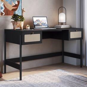 Com um design retrô, a Mesa Escrivaninha oferece amplo espaço para as atividades diárias, sem comprometer a estética do ambiente. A durabilidade é garantida pela estrutura em MDP com acabamento BP, enquanto suas 2 gavetas mantêm seus acessórios organizados e sempre acessíveis. As corrediças metálicas asseguram uma abertura suave das gavetas, e o aplique de tela sintética adiciona um charme único à peça. Os pés robustos da Mesa de Escritório, feitos de madeira maciça de eucalipto, são equipados com sapatas emborrachadas para garantir estabilidade e proteger o piso contra arranhões. A estrutura é reforçada por uma longarina metálica, assegurando durabilidade. Esta Escrivaninha transforma qualquer espaço em um ambiente acolhedor, elegante e produtivo.