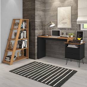 Prática e funcional, a Mesa Escrivaninha Industrial e Estante Livreiro Stela A06 Preto/Freijó, da Mpozenato, é a dupla perfeita para compor a decoração do seu escritório ou home office.