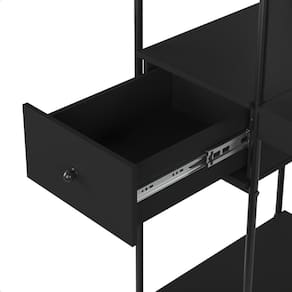 Com prateleiras estratégicas para otimizar o armazenamento e uma gaveta prática para manter seus itens essenciais sempre por perto, esta escrivaninha oferece tudo que você precisa para trabalhar ou estudar com eficiência e conforto.