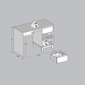 CONTEÚDO DA EMBALAGEM:<Br> 1 Escrivaninha<Br> 1 Kit Ferragens<Br> 1 Manual de Montagem<Br><Br>