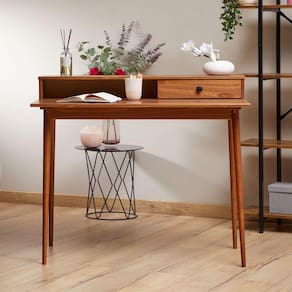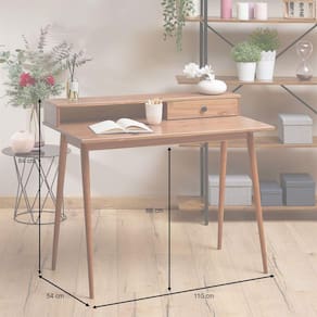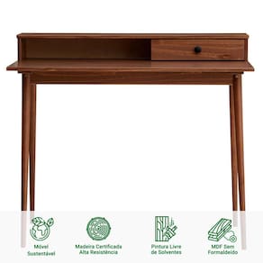 A mesa escrivaninha Malina combina a beleza natural da madeira com funcionalidade, essa escrivaninha oferece o equilíbrio perfeito entre estilo e praticidade. Com sua gaveta espaçosa, nicho para exibição personalizada e prateleira adicional, você terá tudo o que precisa ao seu alcance. A escrivaninha possui design moderno, com seus pés cônicos destaca a beleza do produto. Seja para trabalhar, estudar ou criar, a escrivaninha Maline é a adição perfeita para uma área de trabalho organizada, inspiradora e cheia de personalidade.