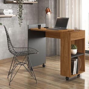 Cor: Jequitiba | Altura: 88,2 cm | Largura: 94,2 cm | Profundidade: 50 cm | Comprimento: 50 cm | Requer Montagem: Sim | Inclui Manual de Montagem: Sim | Material da Escrivaninha: MDP | Quantidade de Caixas de Embalagem: 1 | Modelo: Alessa | Materiais da escrivaninha: MDP | É em forma de L: Não | Cor: Amêndoa / Chumbo