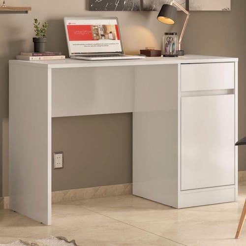 O(a) Mesa Escrivaninha Morada 1 Porta 1 Gaveta Branco - Demóbile é produzido em MDP na escala de brilho Brilho e Fosca com Textura, e possui um grau de dificuldade de montagem: Médio.