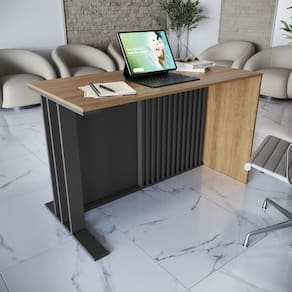 - Estilo moderno com detalhe ripado, que valoriza qualquer ambiente profissional ou residencial. - Tampo espaçoso, ideal para montagem de estação de trabalho ou estudos. - Design limpo e versátil, fácil de combinar com diferentes móveis e decorações. - Material durável, com acabamento fosco e fácil de limpar. - Ideal para home office, escritórios ou espaços multifuncionais.