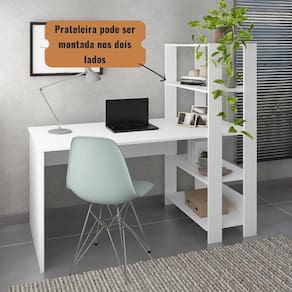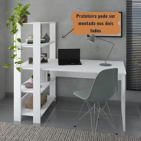 Mesa Escrivaninha Office Com Estante 3 Prateleiras Match Branco -