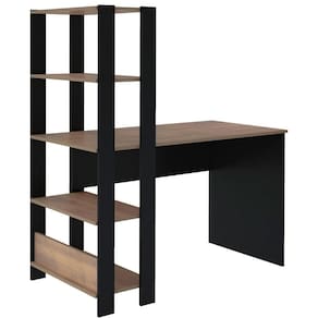 Mesa Escrivaninha Office Com Estante 3 Prateleiras Match Pinho / Preto -