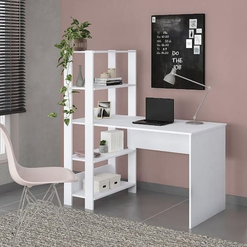 Mesa Escrivaninha Office Com Estante 3 Prateleiras Match Branco -