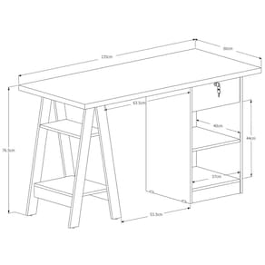Dimensões da Mesa para Escritório com 4 Prateleiras e Gaveta: