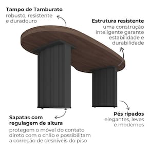 Mesa Escrivaninha para Escritório Tamburato Organic | Artany A Mesa Escrivaninha para Escritório Tamburato Organic da Artany é uma peça de mobiliário que combina elegância, conforto e sustentabilidade. Com um design inovador que apresenta curvas suaves e orgânicas, esta mesa não só aprimora a estética de qualquer espaço de trabalho, mas também promove ergonomia e bem-estar. Ideal para quem valoriza funcionalidade e design responsável em seus móveis. Características:\nModelo: Organic Marca: Artany Comprimento: 200 cm Profundidade: 90 cm Altura: 75 cm Peso: 47,9 Kg Material: Tampo Tamburato com design ergonômico, laterais e pés em MDP. Acabamento: Borda ABS e acabamento BP para durabilidade e toque suave. Design: Curvatura adaptada para melhor ergonomia e pés ripados para uma estética única.\nBenefícios:\nErgonomia Avançada: Design curvo que se adapta naturalmente ao corpo para maior conforto durante longas horas de trabalho. Estética Moderna: As curvas orgânicas e os pés ripados conferem um visual contemporâneo e acolhedor. Sustentabilidade: Utilização de materiais sustentáveis que minimizam o impacto ambiental. Durabilidade e Conforto: Materiais de alta qualidade que oferecem resistência ao uso diário e um acabamento agradável ao toque.\nEspecificações:\nCapacidade de Carga: 50 kg distribuídos no tampo. Montagem: Necessita montagem, seguindo as instruções detalhadas no manual do produto. Ajustabilidade: Sapatas com altura regulável para estabilidade em diferentes superfícies.\nAvisos:\nVerificação de Produto: Antes de comprar, verifique as dimensões e a cor para assegurar a compatibilidade com seu espaço. Objetos Decorativos: Objetos decorativos nas imagens não estão inclusos. Instalação e Manutenção: Recomenda-se a consulta ao manual do produto e a contratação de um profissional para instalação e cuidados específicos.\nCompre agora sua Mesa Escrivaninha para Escritório Tamburato Organic | Artany na DoShop, ir as compras nunca foi tão fácil, rápido e seguro! Transforme seu local de trabalho com a Mesa Escrivaninha Tamburato Organic da Artany, onde design inteligente encontra funcionalidade. Esta mesa não apenas eleva a decoração do seu escritório, mas também contribui para o bem-estar e a produtividade diária, tornando-se uma escolha excelente para profissionais que buscam conforto e responsabilidade ambiental em seus móveis.