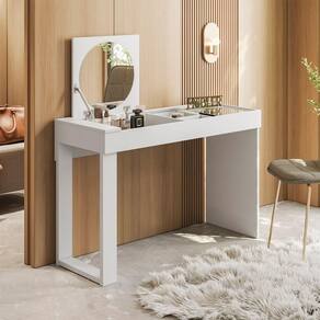 Organize seu espaço com a mesa escrivaninha penteadeira Play, ideal para rotina de estudos, trabalho e cuidados pessoais. Com design moderno e multifuncional, ela oferece praticidade ao reunir área de maquiagem e estação de trabalho em um único móvel. O tampo amplo e as duas gavetas com bom espaço interno ajudam a manter cosméticos, materiais de escritório e acessórios sempre organizados. O espelho integrado e o acabamento em tons neutros branco e amadeirado combinam facilmente com quartos e home offices contemporâneos. A estrutura em MDF com acabamento UV de alta resistência reforça a durabilidade para o uso diário.