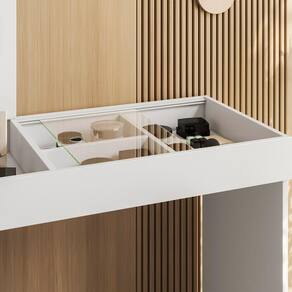 Acabamento em MDF e UV: estrutura resistente com visual moderno e neutro.