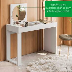 Design multifuncional: funciona como penteadeira e escrivaninha no dia a dia.