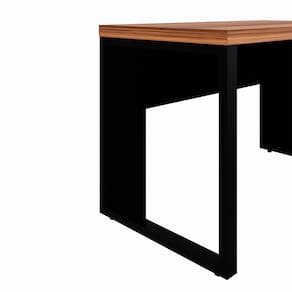Design Funcional: O painel lateral e frontal em MDP com acabamento melamínico adiciona um toque de sofisticação e contribui para a estabilidade da mesa, sem comprometer o visual leve e moderno.