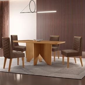 Mesa Evora 120 Mdf Canto Copo E Com 4 Cadeiras Safira Veludo Marrom-naturalle-naturalle