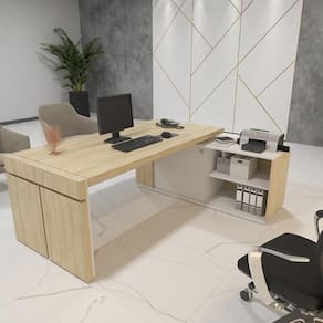 FORMATO: Em L | PESO DO PRODUTO (KG): 127,74 | ESTADO DE ORIGEM: PR | LARGURA PRODUTO COM EMBALAGEM (CM): 205 | LARGURA DO PRODUTO (CM): 202,5 | MATERIAL PRINCIPAL: MDP | DESCRIÇÃO DO TAMANHO: 75x202,5x183,2 | ALTURA DO PRODUTO (CM): 75 | PRODUTO PRECISA DE MONTAGEM?: Sim, a montagem é simples mas sugerimos a contratação do nosso de montagem (para os CEPs em que o está disponível) ou de algum experiente de sua preferência | NOME DO PRODUTO NO FORNECEDOR: Estação Diretoria Tamburato | CONTEÚDO DA EMBALAGEM: 1 Mesa | INSTRUÇÕES/CUIDADOS: Limpar com pano macio e seco, não utilizar produtos abrasivos | MODELO: Mesa em L | COMPRIMENTO PRODUTO COM EMBALAGEM (CM): 94 | CORES DO PRODUTO (FILTRO DE CORES): Carvalho Branco | ALTURA DO PRODUTO COM EMBALAGEM (CM): 25,8 | COR PREDOMINANTE: Marrom | QUANTIDADE DE GAVETAS: 0 | MATERIAL PARA FILTRO: MDP | PESO PRODUTO COM EMBALAGEM (KG): 127,74 | COMPRIMENTO DO PRODUTO (CM): 183,2