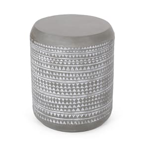 Mesa final externa Benjara, concreto sintético cinza redondo de 16 polegadas com padrão branco