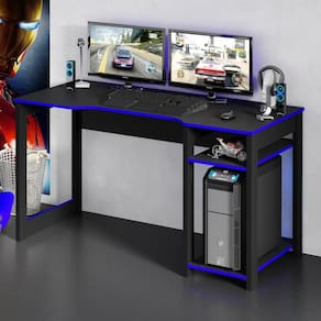 A Mesa Gamer ME4152 da Tecnomobili possui usinagem anatômica no tampo para maior conforto, com nicho para CPU aberto para melhor ventilação. Com um visual diferenciado e inovador o jogador pode adaptar até dois monitores na mesa.