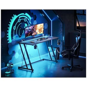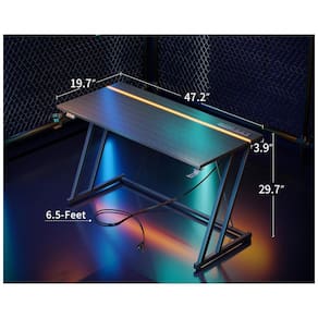 Esta mesa de jogos vem equipada com faixas de luz LED integradas e um controle remoto, oferecendo 10 cores e 20 modos para criar a atmosfera ideal durante suas partidas. Ela também inclui uma tomada embutida com 3 tomadas elétricas, 1 porta USB e 1 porta Tipo C, facilitando o carregamento de seus dispositivos. Com um design duplo em Z, a mesa oferece excelente estabilidade e é adequada para uso por crianças e adultos. A estrutura splitboard permite a instalação de um braço de monitor, proporcionando maior flexibilidade para seu setup. A montagem é facilitada com um manual detalhado e um vídeo passo a passo incluídos.