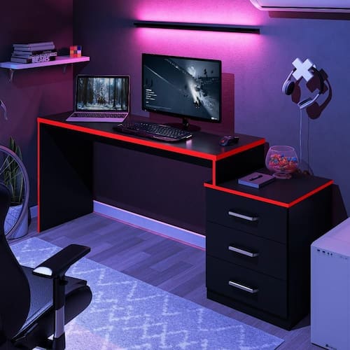AMesa Gamercom Plataforma Versátil foi desenvolvida para adaptar e ajustar sua área de trabalho, deixando um espaço para armazenagem de mais objetos e/ou documentos.