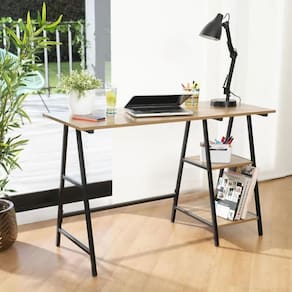 A mesa possui uma construcao robusta e resistente, garantindo que possa suportar o peso de seus equipamentos de jogo sem problemas. A altura do produto e de 92,5 cm, a largura e de 153 cm e o comprimento e de 60 cm, proporcionando um espaco de trabalho confortavel. Alem disso, a mesa vem com uma mesa de apoio adicional, perfeita para guardar seus jogos, controles e outros acessorios.