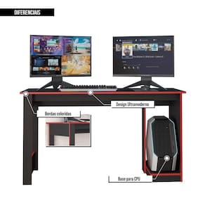 A Mesa Para Computador Gamer vai te surpreender com seu design e funcionalidade que somente ela pode apresentar. A Mesa Gamer possui Base para CPU deixando seu setup muito mais organizado. Feito em MDP BP possui maior resistência e durabilidade ao móvel.