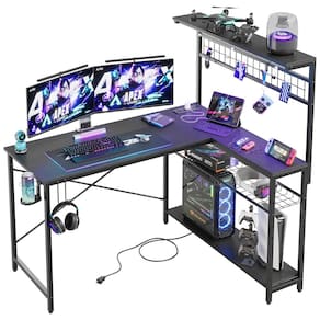 A mesa de jogos Bestier em formato de L oferece um amplo espaço de trabalho e armazenamento versátil com suas 4 camadas, proporcionando uma organização eficiente e aumentando a produtividade. A prateleira superior conta com um painel de pinos de grade de metal ajustável, completo com um gancho conveniente, clipes de fichário e peças magnéticas para exibir de forma organizada itens essenciais para jogos.