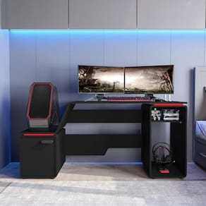 Mesa Gamer E Escritorio Space One - Preto/logo Vermelho