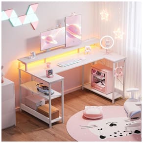 Ficha Técnica Especificação Detalhes Marca ODK Formato Em U (retangular expandido) Dimensões (P x L x A) 68 cm x 122 cm x 88,5 cm Diagonal da superfície 145 cm Número de gavetas 1 Número de prateleiras 2 Capacidade de armazenamento 225 litros Material do tampo Madeira engenheirada (fibra de carbono branco) Material da base Metal e plástica composta Luzes LED 10 cores, 20 modos dinâmicos Tomadas 3 AC + 2 USB Montagem Requerida (ferramentas incluídas, 30 min) Tipo de fixação Tabletop Voltagem 110 volts Cor Branco Peso 18 kg Marca: Não Informado