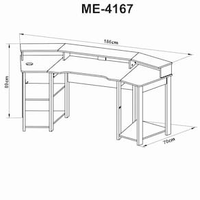 Criatividade, conforto e modernidade são as principais características da Mesa Gamer ME4167 da Tecnomobili. Desenvolvida para acomodar até dois monitores, entrega não só o conforto na usabilidade, mas muita praticidade para diversas horas de uso. Modelo anatômico e surpreendente em sua cor sua proposta é ousada e é a melhor parceira para a horas e horas de jogo. Possui usinagem anatômica no tampo para melhor conforto e desempenho, prateleiras auxiliares, nicho aberto para ventilação da CPU, suporte para copo, gancho para headset e tampo superior.