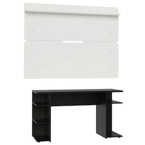 O acabamento da mesa é preto e o do painel é branco. É feito com a Pintura Poliéster de 7 camadas exclusiva da Madesa, um método ecológico e que oferece maior proteção.