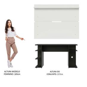 A mesa comporta perfeitamente todos os acessórios necessários, com espaço amplo no tampo, além de possuir diversas prateleiras nas laterais. Muito versátil, pode também ser utilizada como escrivaninha para trabalho ou estudo.