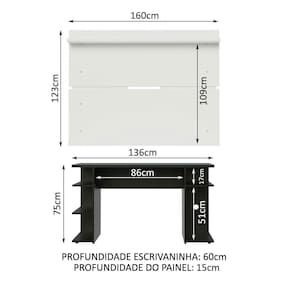 Com espaço para de até 65 polegadas, o painel contempla uma prateleira na parte superior, perfeita para objetos decorativos. Possui uma abertura central para a passagem dos fios dos aparelhos, uma comodidade a mais.