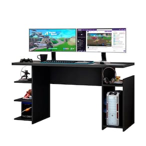 Caractetísticas: Estrutura em MDP Tampo de 25mm Comporta até 2 monitores Design gamer Nicho para gabinete Suporte metálico para headset 2 prateleiras decorativas