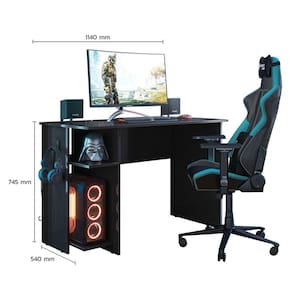Apresentamos a mesa Gamer com 2 Prateleiras Qmovi, produto desenvolvido para quem busca uma mesa para passar do seu dia jogando e/ou trabalhando em casa. Mesa Gamer com um design compacto e diferenciado, que vai ajudar na otimização de espaço e organização do ambiente. Possui 2 prateleiras, uma prateleira elevada para o CPU e outra colocar o que desejar, além de um lindo suporte para seu fone de ouvidos na lateral. Produto essencial para te acompanhar nas de diversão e na sua jornada de trabalho.