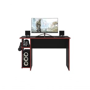 Mesa para Escritório e Gamer Preto Fosco Vermelho Qmovi